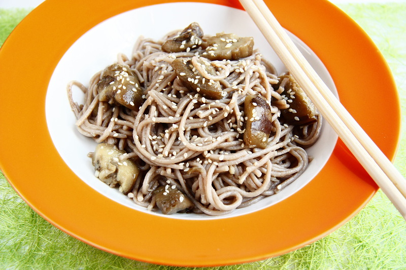 Лук, нарезанный полукольцами, слегка обжарить на растительном масле, добавить небольшие кусочки куриного филе, жарить до его полуготовности. Положить предварительно отваренные измельченные грибы (шампиньоны можно не варить), жарить 5 мин. Добавить мякоть апельсина, нарезанную кусочками, сметану по вкусу, 1 ст.л. водки (по возможности), посолить, поперчить, жарить 2 мин. Положить в соус лапшу, прогреть. Мой совет: без апельсина получится более привычная лапша.