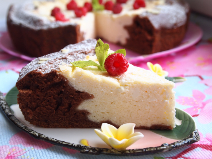 1. Для начинки творог и яйца хорошо взбить в блендере с сахаром, ванилином и крахмалом. Добавить изюм и перемешать. Для теста в чаше мультиварки растопить масло, включив любую программу на 2 мин. Смазать им стенки чаши. Яйца в бленде-ре взбить с сахаром. Добавить сметану, растопленное масло и еще раз взбить. Порциями всыпать муку, какао, соду и еще раз взбить.