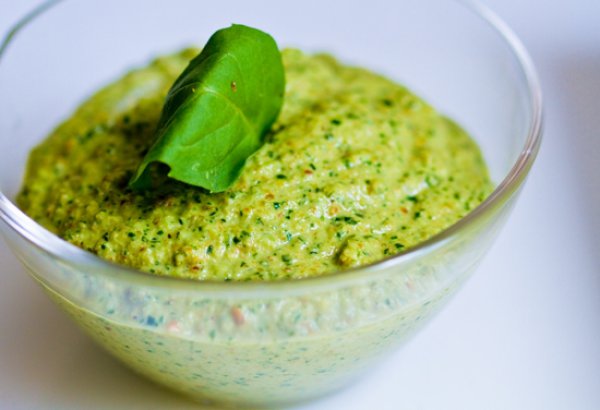 4. Добавить тертый сыр и оставшееся оливковое масло, хорошо перемешать. Соус хранить в холодильнике.