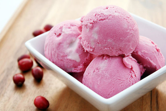 5. Свежую клюкву измельчить в блендере. Клюкву и мороженое размешать до однородной массы и поставить в холодильник до застывания на 1 ч.