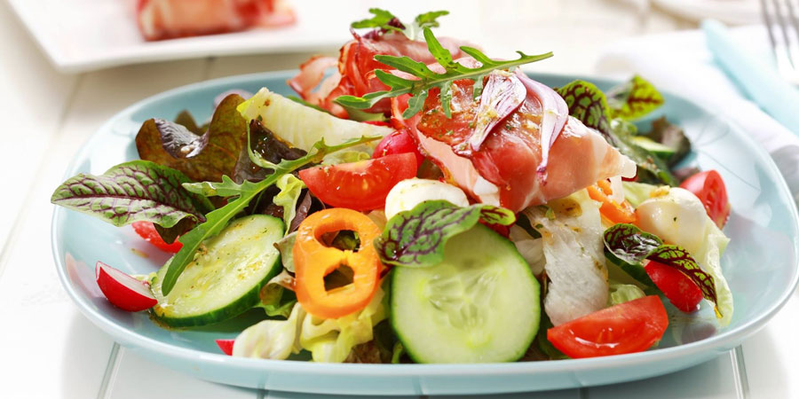 Салат из шпината с вареным яйцом и хрустящей куриной грудкой