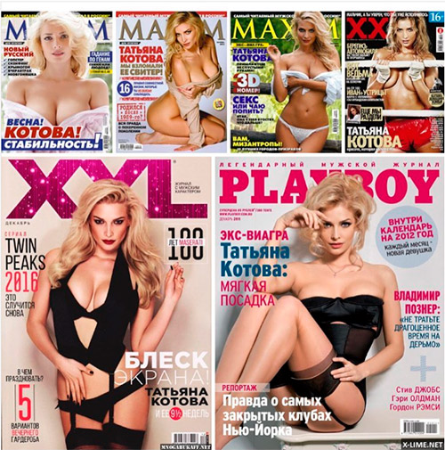 За свою карьеру Татьяна Котова не раз и не два украшала обложки мужских журналов, пишет Storinka. Певица собрала целую коллекцию журналов со своим изображением на первой страничке. Татьяна сделала фотоколлаж из пикантных снимков и предложила поклонникам проголосовать за лучшую, на их взгляд, обложку. На снимках можно увидеть Татьяну в черном и белом нижнем белье, а также топлес.