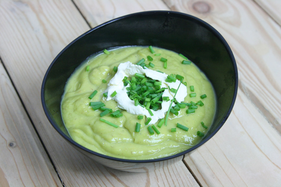 Холодный крем-суп с кусочками авокадо