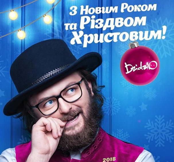 Артистичный и украинский до мозга костей Дзидзьо опубликовал поздравительную открытку с Новым годом и Рождеством, где он задумчиво тянет пальцы в рот.