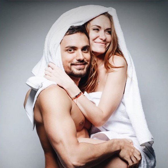 Свой пост она иллюстрировала эффектным снимком, на котором запечатлена вместе с мужем – известным пластическим хирургом Эдгаром Каминским. Как пишет storinka.com.ua, пикантности фото придает то, что звездная чета позирует частично оголенными – супруг держит на руках рыжеволосую красавицу, прикрывающую свое тело белым банным полотенцем.