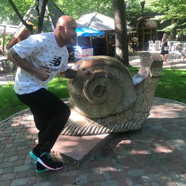 В подписи к посту он пояснил, что ненавидит двигаться как улитка, просто «фото вышло прикольное». Что касается образа спортсмена, то на фотоснимке он запечатлен черных спортивных штанах, белой футболке и кроссовках с яркой подошвой.