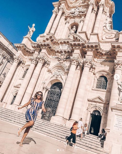 Теледива отметила: «Ничто так не красит Женщину, как Италия, Солнце и новое платье… Ну, а я ночью из Италии вернулась…». В качестве иллюстрации к посту она разместила несколько эффектных фотоснимков, на которых запечатлена во время прогулки по древнему итальянскому городу Сиракузы, славящемуся большим количеством исторических памятников и руин, пишет storinka.com.ua.