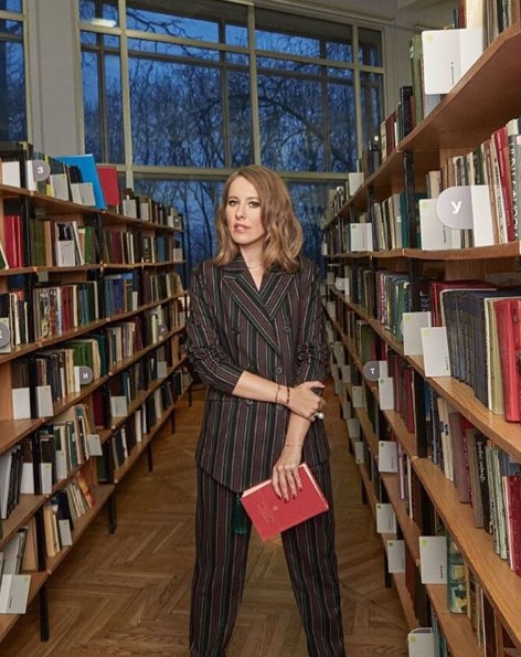 Этот пост Собчак сопроводила своей фотографией в полосатом брючном костюме. При этом позировала теледива в библиотеке, пишет storinka.com.ua.