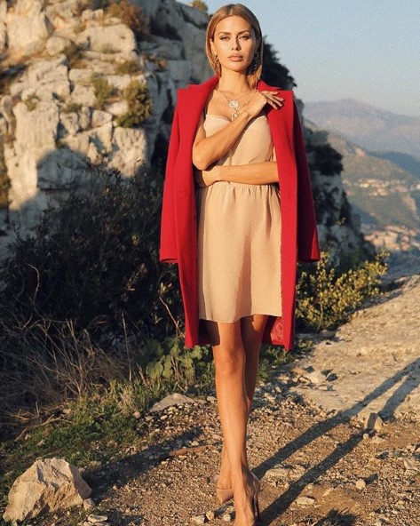Также Виктория опубликовала свое фото в стильном аутфите, который состоял из нюдового платья, туфлей в тон и красного пальто, пишет storinka.com.ua.