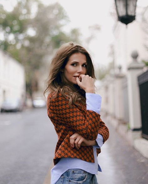 Позировала Тоня в джинсах, голубой рубашке и красно-черном жакете в традиционный принт «гусиная лапка». Подписчики осыпали свою любимицу комплиментами.