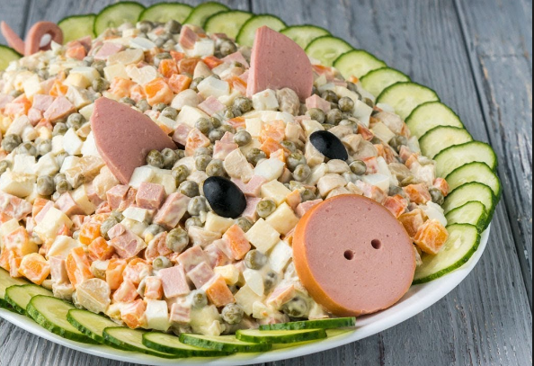 Салат Оливье в форме свиньи