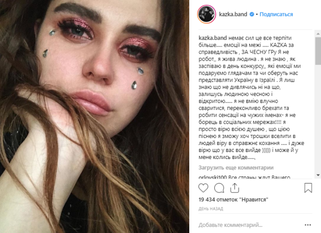 Александра написала, что она не имеет ни малейшего понятия о том, насколько удачно их группе удастся выступить на нацотборе, единственное, чего ей бы хотелось – это донести до людей своим творчеством ту любовь, которая заключена в коллективе KAZKA. Она признаётся, что нервы уже на пределе, и сил пребывать в таком состоянии у неё больше не осталось.