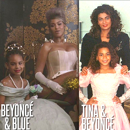 На днях мать Бейонсе Тина Ноулз, обратила внимание на фанатский коллаж, в котором совмещено два кадра, пишет storinka.com.ua. На одном из них Тина позирует с юной Бейонсе, а на другом – Бейонсе с Блу Айви. Когда глядишь на эти снимки, не остается сомнений, на кого похожа малышка.