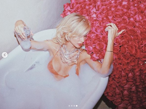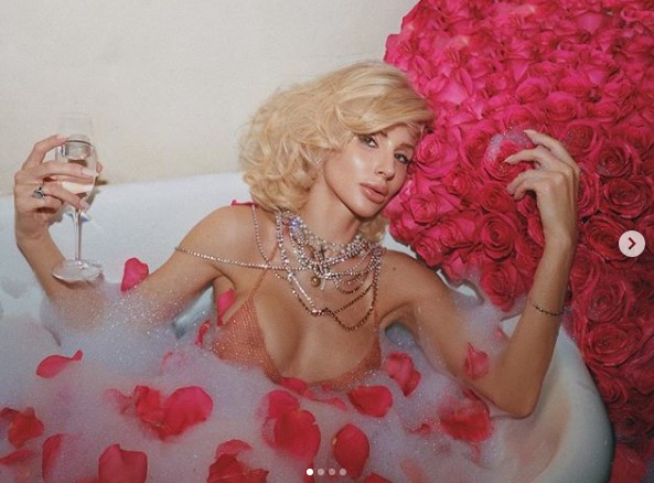 Вчера Светлана Лобода отметила свой 38-ой день рождения. В честь этого события певица поделилась с подписчиками серией праздничных фото. На снимках звезда запечатлена в ванне с бокалом шампанского в руках. Рядом с артисткой – огромный букет роз. Принимать ванну с пеной и лепестками роз исполнительница решила в полупрозрачном топе. Шею именинницы украсило оригинальное колье, пишет storinka.com.ua.