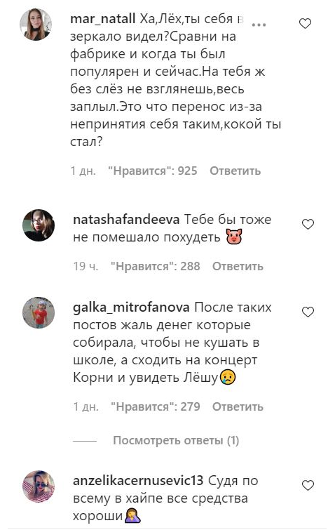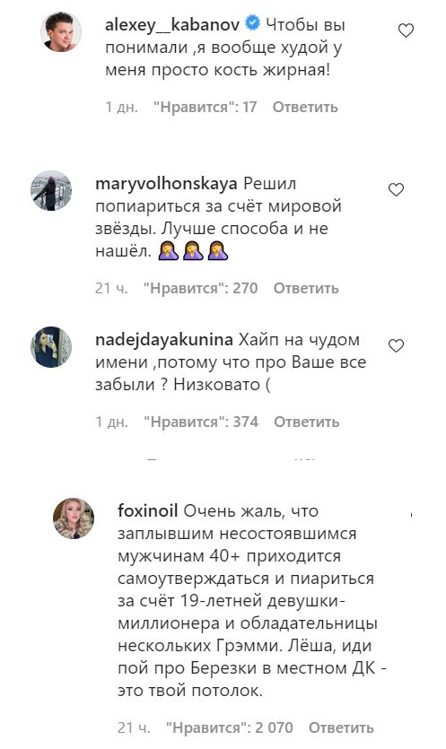 Подобные высказывания в адрес любимицы миллионов разгневали сеть. В комментариях под публикациями Алексея забросали негативными отзывами и "комплиментами" в его адрес.