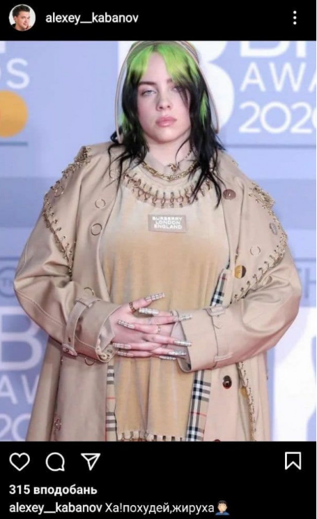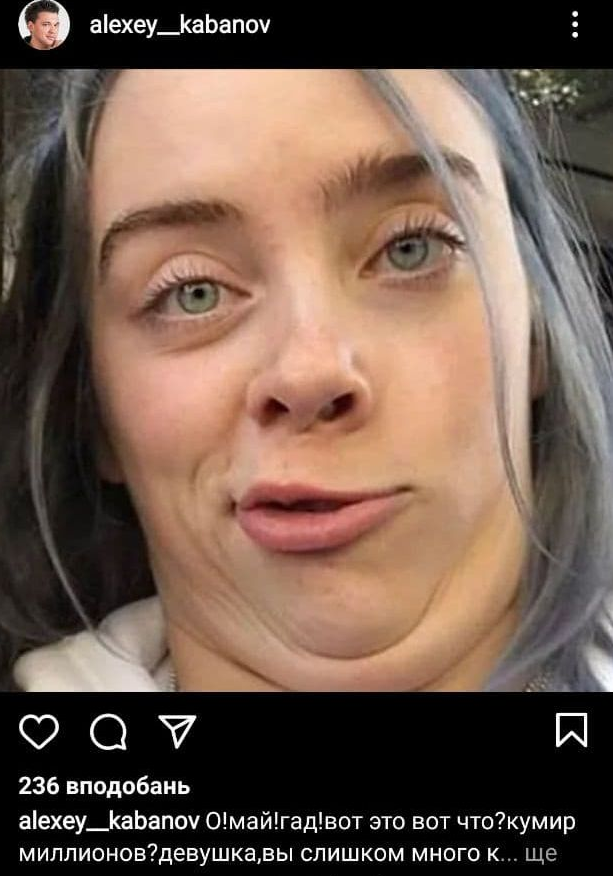 Солист когда-то очень популярной российской группы "Корни" Алексей Кабанов решил видимо немного попиариться на имени кумира молодежи американской певице Билли Айлиш.