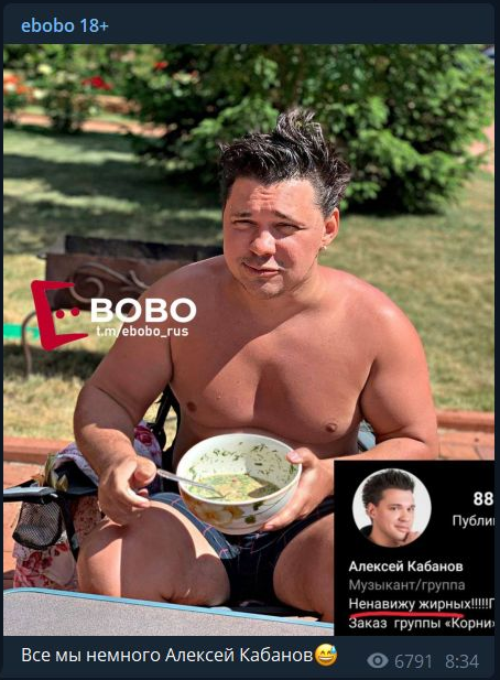 Стоит отметить, что сам Кабанов не является стройным и подтянутым атлетом. Он достаточно упитанный мужчина. В сети и вовсе припомнили его "потрясающую" фигуру, которая уж явно далека от идеала. Хотя и в описании профиля у Алексея прописано, что он ненавидит жирных, но себя к ним он видимо не причисляет.