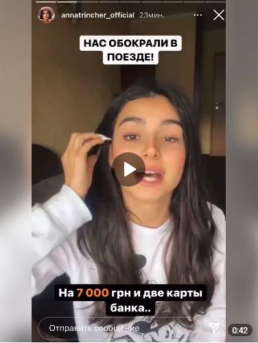 Как рассказала Тринчер в сторис своей страницы в Instagram, когда она ехала в поезде в Хмельницкий вместе со своей командой, их обокрали. Причем произошло это в закрытом купе.