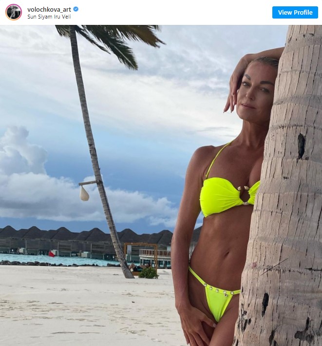 Российская балерина Анастасия Волочкова 13 мая обнародовала в Instagram фото, на котором запечатлена во время отдыха на Мальдивах. Она позировала стоя в купальнике с микроплавками.
