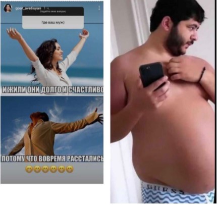 Но в последнее время мужчина исчез из блога Гоар, удалила она и все ранее размещённые снимки с ним. Поклонники спросили визажиста, где же её муж? На что она ответила, разместив картинку с надписью: «И жили они долго и счастливо, потому, что вовремя расстались».