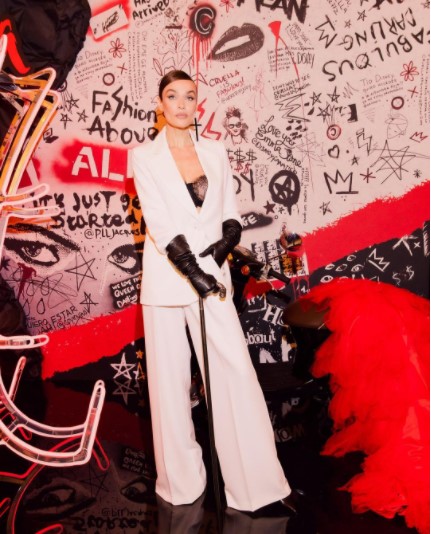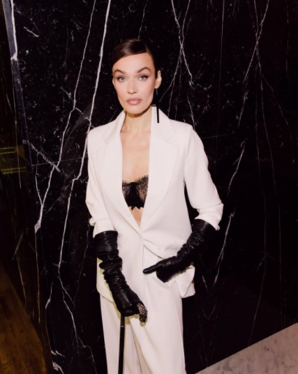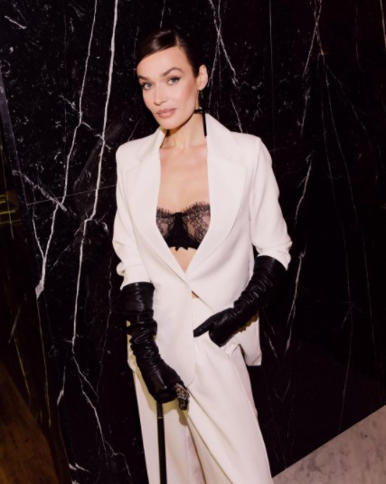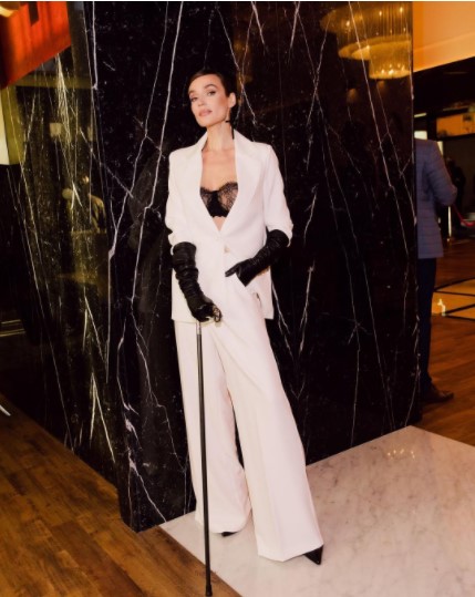 На премьере фильма "Круэлла" Алёна появилась в белом костюме, который состоял из широких белых брюк и пиджака, который был надет на кружевной топ, больше напоминающий нижнее бельё.