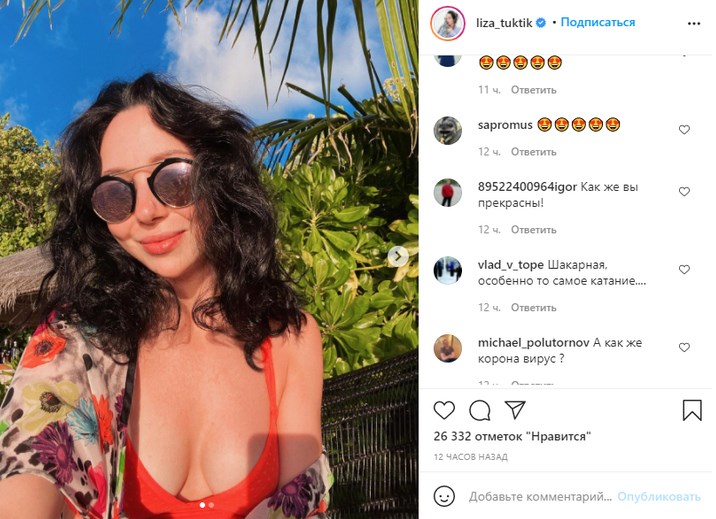 «Лиза, ты просто супер!», « Огонь!», «Шикарная!», «Красотка Елизавета», «Вы там стали королевой пляжа?», «Девушка с естественной красотой», «Лиза просто бомба!» — восхитились под фото подписчики.