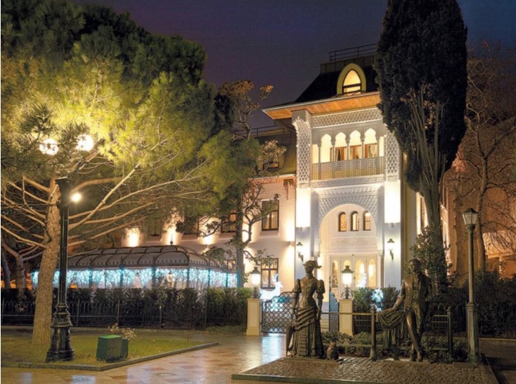 Гостиница находится в центре Ялты и известно, что на ее реставрацию София потратила примерно миллион долларов. Сейчас отель не работает, а когда был открыт, то был довольно дорогим. Ночь в люксе стоила около 80 тыс. рублей, а самый скромный номер - 15 тыс. рублей за ночь.