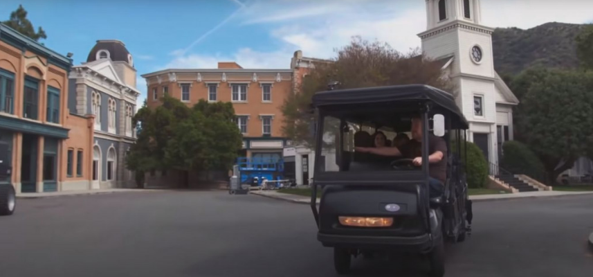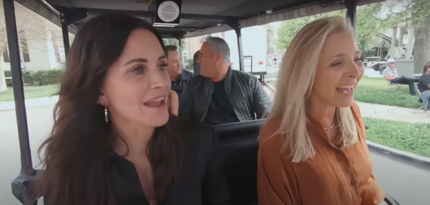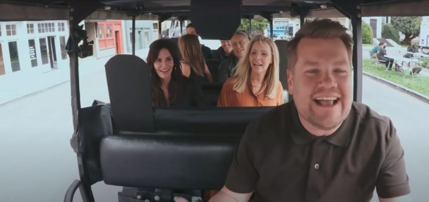 Актеры призвали Кордена прокатиться на гольф-багги по студии Warner Bros. перед съемками "игрового" эпизода "Друзей", вышедшего 27 мая.