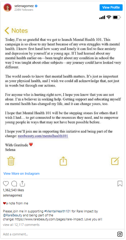 Отметим, что Гомес недавно запустила кампанию Mental Health 101, в рамках которой поддерживает тех, кто столкнулся с тревогой и депрессией в молодом возрасте.