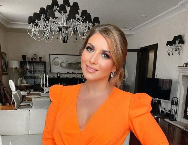 Звездная брюнетка облачилась в черный топ из небольшой полоски ткани и оранжевый жакет, слегка опускающийся на бедра. Артистка не забыла и об аксессуарах: ее образ дополнили крупные серьги-кольца и желтые очки. Певица Жасмин гордо шагала на публике в туфлях-лодочках, демонстрируя яркий образ. Недостаток одежды на уровне гениталий мать троих детей нисколько не смущал.