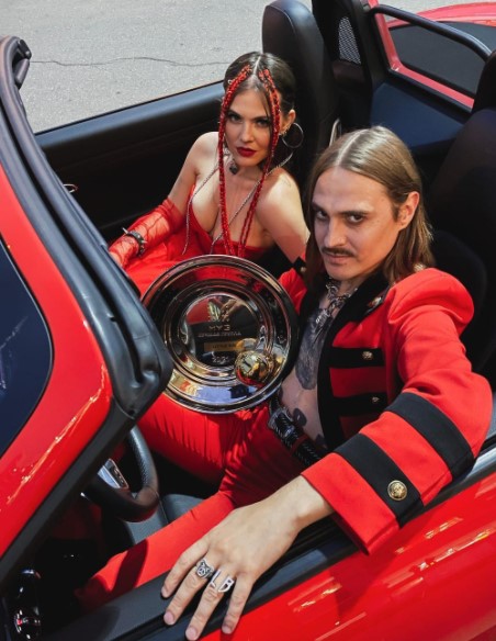 Участники Little Big Илья Прусикин и Софья Таюрская первый раз появились на светском мероприятии как любовные партнеры и коллеги по работе одновременно. На днях артисты официально заявили о том, что между ними зародились чувства и теперь у них роман. Звездная пара появилась на красной дорожке премии "МУЗ ТВ" в эпатажном образе в красной цветовой гамме. Илья Прусикин надел пиджак на голый торс, а Софья Таюрская выбрала пышное платье с экстравагантными аксессуарами.