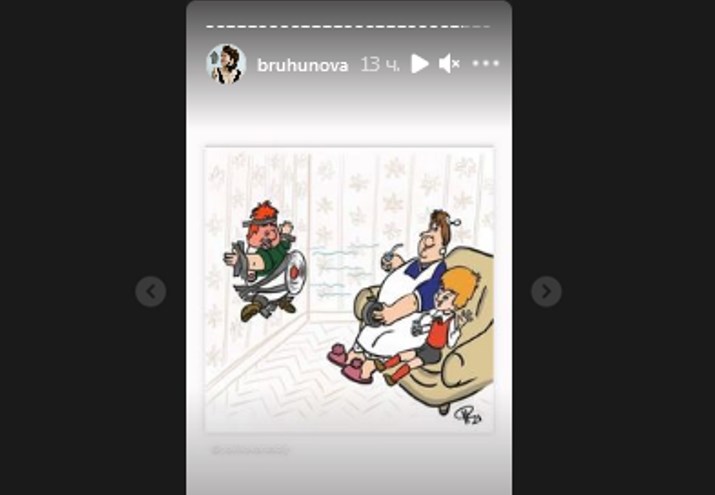 До того Брухунова продемонстрировала модную сумочку крохотных размеров, которая, по мнению модного эксперта Эвелины Хромченко, свидетельствует о степени счастья своей обладательницы.
