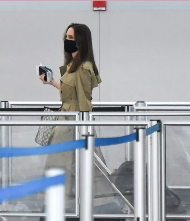 Актриса выбрала лаконичные бежевые босоножки на небольшом каблуке. Она оставила распущенными свои роскошные локоны и отказалась от макияжа в пользу естественной красоты. Энджи не забыла и о защитной маске, знаковом «аксессуаре» нашего времени.