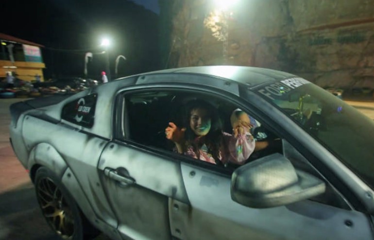 Потому что после дрифта певицу посадили на багажник, сказали крепко держаться руками за спойлер и… продолжили дрифтить на безумной скорости!