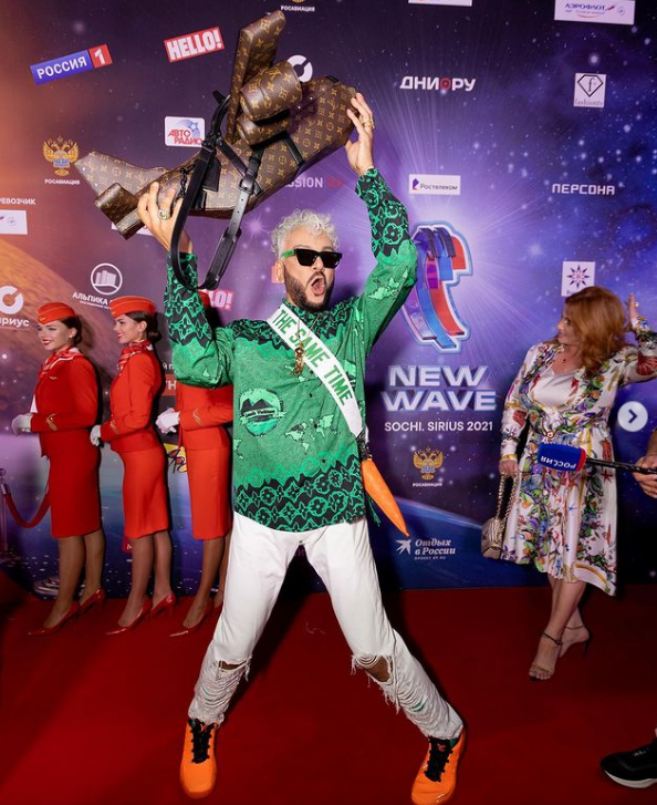 Певец Филипп Киркоров на открытии конкурса "Новая волна" в Сочи похвастался сумкой от Louis Vuitton за три миллиона рублей. Фотографиями своего эффектного выхода артист поделился в Instagram.