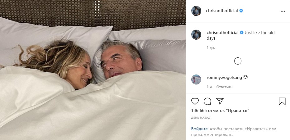"Как в старые добрые времена!", — подписал фото в постели с Сарой Джессикой Паркер Крис Нот.