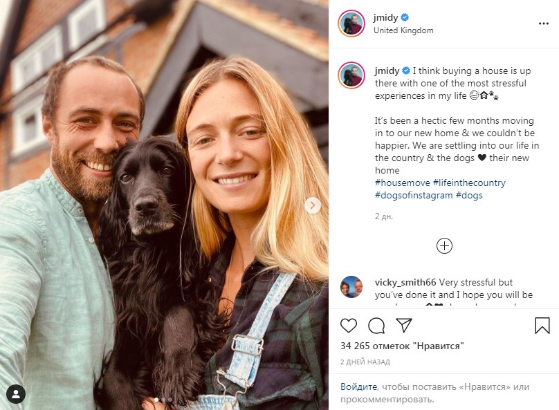 Младший брат герцогини Кембриджской Кэтрин, 34-летний Джеймс Миддлтон вместе со своей невестой и питомцами переехал в новый дом, расположенный в селе. Об этом он сообщил 7 августа в Instagram.