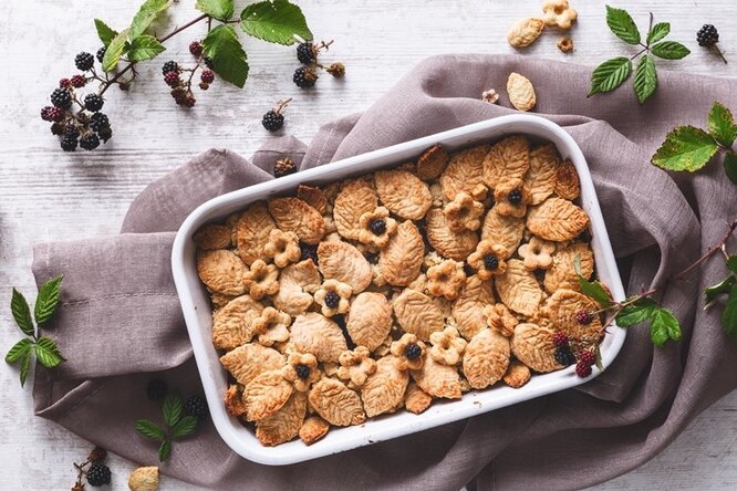 - Выдави печенье формочками для выпечки или обычным стаканом.