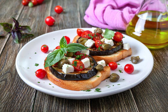 В рецепт салата капрезе входят свежие помидоры, моцарелла, базилик и оливковое масло. Эти же ингредиенты можно добавить в сэндвич. Только масла нужно совсем немного, чтобы оно не пропитало хлеб насквозь. В итоге получаем пикантный бутерброд, ассоциирующийся с летом в Италии.