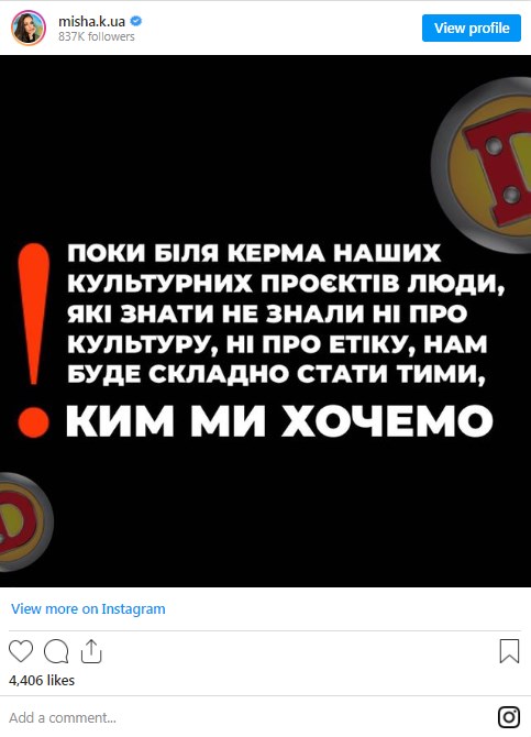Впрочем, потребовал извинений и от самой Мишиной. Несколько часов назад актриса выложила большой пост, в котором призывает женщин не давать себя в обиду, учиться стоять за себя и создавать как можно больше прецедентов, в которых виноватые будут привлекаться к ответственности.