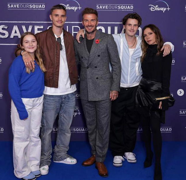 Дети и жена пришли поддержать знаменитого футболиста во время показа документального фильма "Спасите нашу команду", посвященного наставничеству Дэвида Бекхэма.