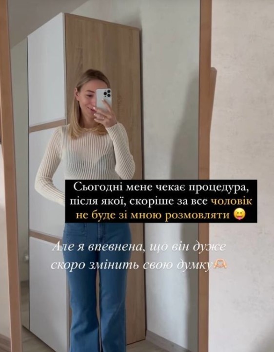"Сегодня меня ждет одна процедура. В первую очередь будет в шоке мой муж и не исключительно, что он не будет со мной разговаривать, или даже разведется. По крайней мере, он так говорил. Он еще не знает", — заинтриговала подписчиков Репяхова.