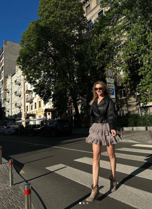 35-летняя Никитюк засветила ноги в мини-юбке на улице в Киеве