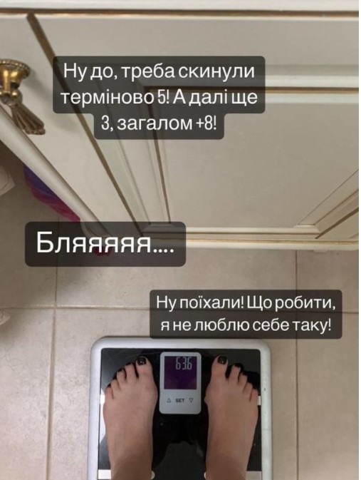 "Надо сбросить срочно пять кило, а дальше еще три. В общем, восемь кило. Ну поехали, что делать! Я не люблю себя такую", — призналась артистка.