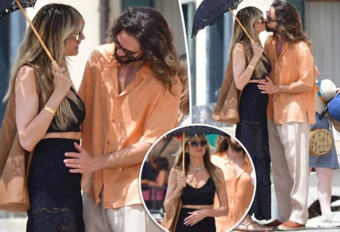 Хайди Клум и ее возлюбленный Том Каулитц были замечены во время прогулки по улицам Венеции, но бросилось в глаза то, что мужчина несколько раз положил руки на живот немецкой модели.