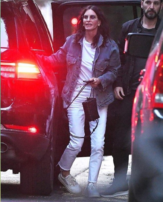 Звезда "Крика" была одета в трендовые белые джинсы с потрепанным краем, которые сочетала с белой футболкой, джинсовой курткой и белыми кроссовками. Кортни, отметившая свой день рождения в прошлом месяце, распустила свои темные волосы и уложила их в свободные волны.
