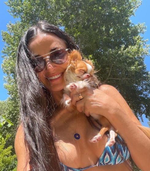 В прошлый вторник знаменитость отправилась на природу со своим домашним любимцем. Деми показала, как загорала, а также дурачилась и прыгала на надувном плоту в озере.