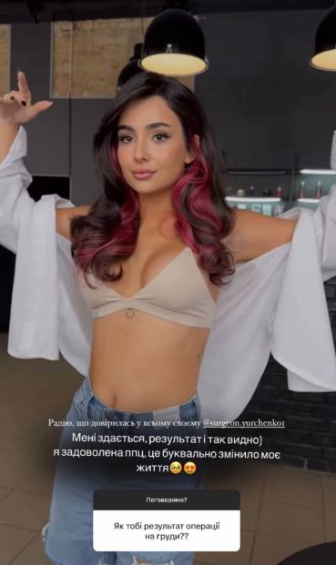 У артистки в Instagram-stories поинтересовались, довольна ли она пластической операцией, сделанной полтора года назад. Исполнительница откровенно призналась, что не жалеет о пластике груди. Более того, она чувствует себя увереннее и больше нравится себе.