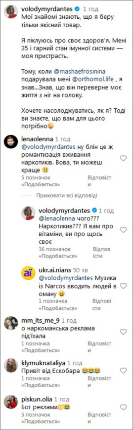 "Мои знакомые знают, что я беру только качественный товар. Я заботлюсь о своем здоровье. Мне 35 и хорошее состояние иммунной системы - моя страсть", - подписал ролик эксучастник группы "ДиО.фильмы" и добавил, что Маша Ефросинина посоветовала ему витамины.