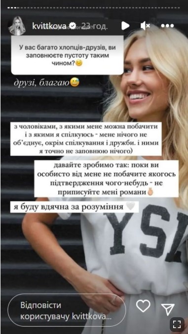 Украинская блогерша Даша Квиткова отреагировала на слухи вокруг ее личной жизни.